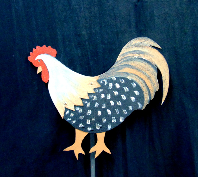 Dottie is hand painted on recycled metal. She is looking for a warm place to call home. Dimensions: 17" x 14" stake 9".
